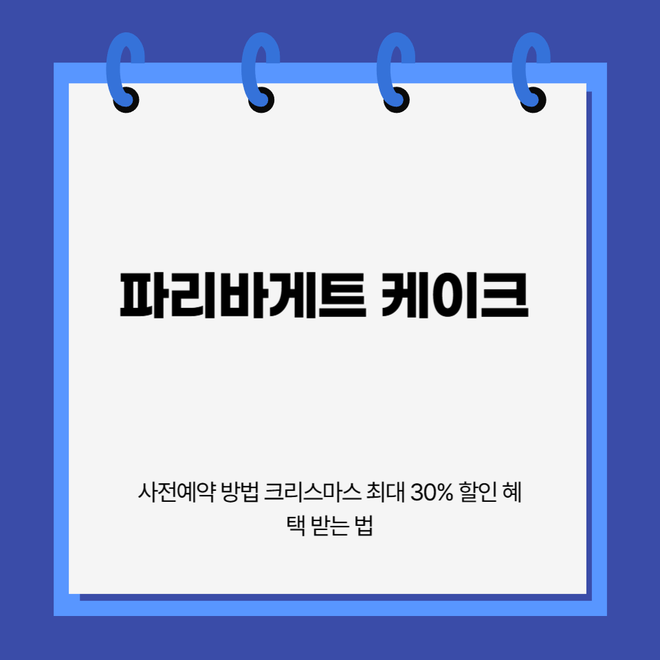 연말 파티 준비의 하이라이트! 파리바게트 크리스마스 케이크는 미리 사전예약하면 최대 30% 할인 혜택을 받을 수 있습니다. 올 겨울 달콤한 케이크를 싸게 & 편하게 준비하는 방법을 지금 확인해보세요!