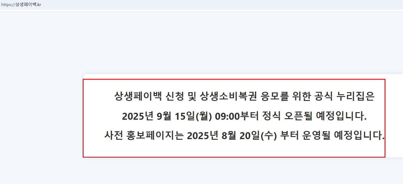 실제로는 누리집(상생페이백.kr)에 들어가서 개인정보 제공 및 카드사 연동 동의 후 신청 절차를 완료해야만 합니다.