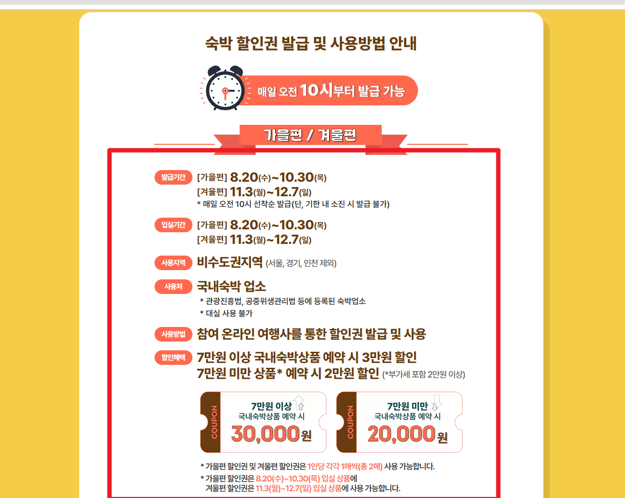 - 5만 원 쿠폰 (특별재난지역 전용): 해당 지역 숙소에서 사용 가능