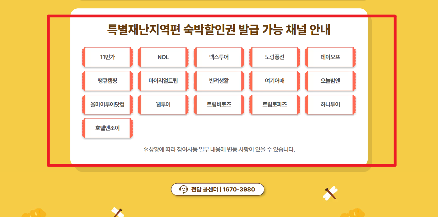 - 특별재난지역 숙소 예약 시 최대 5만 원 추가 할인!