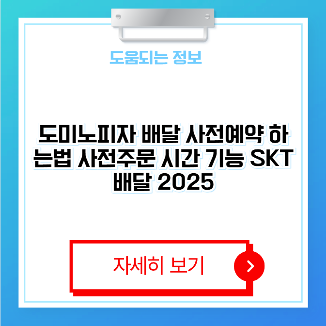 SKT 고객이라면 도미노피자 사전예약으로 50% 할인된 가격에 맛있는 피자를 즐길 수 있어요. 빠르게 도미노피자 예약하고 혜택 누리시려면 아래에서 확인하세요.