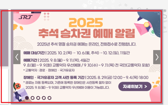 | SRT 우선 예매 | 9월 8일(월) ~ 9월 9일(화) | 별도 공지 | 교통약자 대상 |