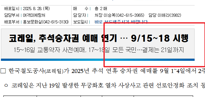 [2025추석열차승차권예매시작] 정보를 정확히 파악하고, 예매 전략을 사전에 준비하는 것이 명절 스트레스를 줄이는 첫걸음입니다.