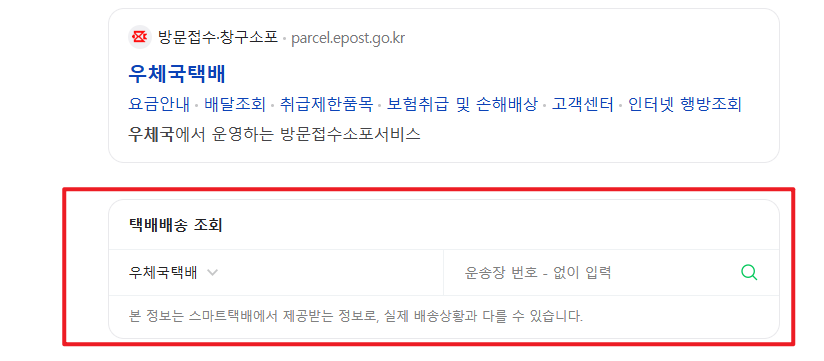 - 검색창에 ‘우체국택배 배송조회’ 입력