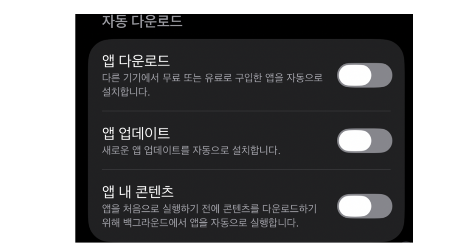 - ‘앱 업데이트’ 항목 OFF로 변경
