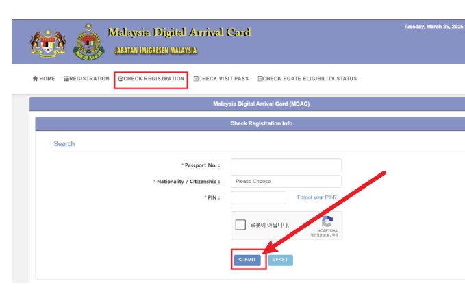 등록이 완료되면 이메일로 핀(PIN)번호가 전송되며, 해당 번호로 말레이시아 입국신고서 상태를 다시 조회할 수 있습니다.