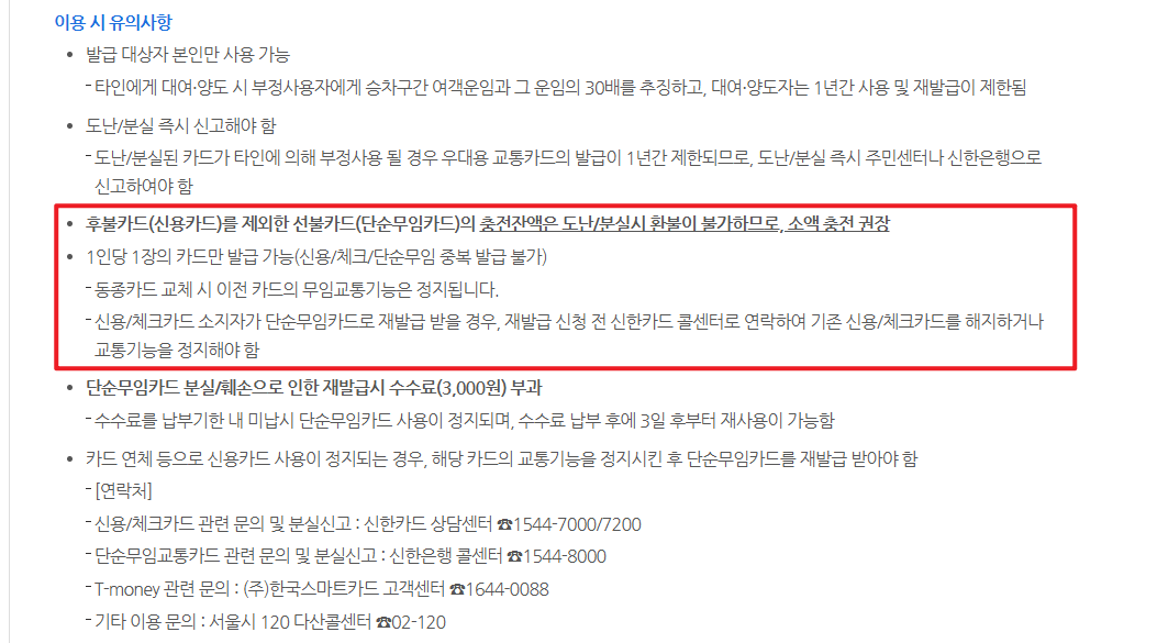 - 지하철 고객센터: 현장에서 바로 분실 등록 및 신규 카드 발급 가능