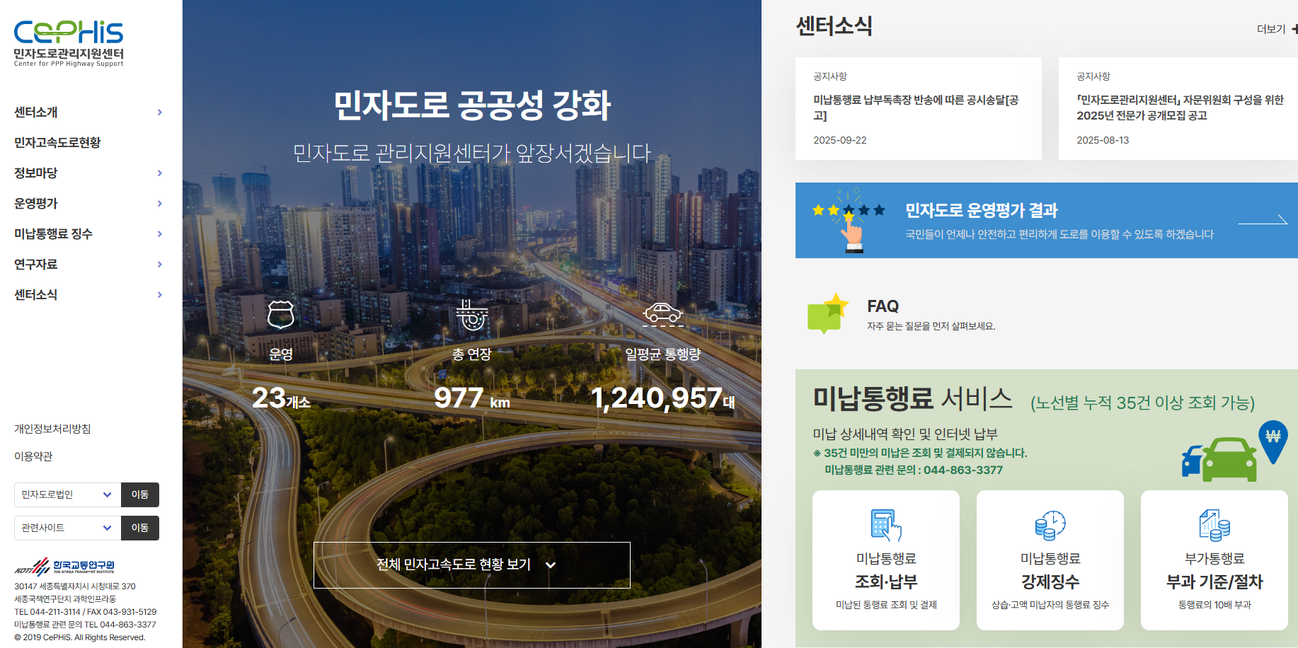 민자고속도로의 경우, 도로공사가 아닌 민간사업자가 운영하기 때문에 별도의 조회 시스템이 필요합니다.