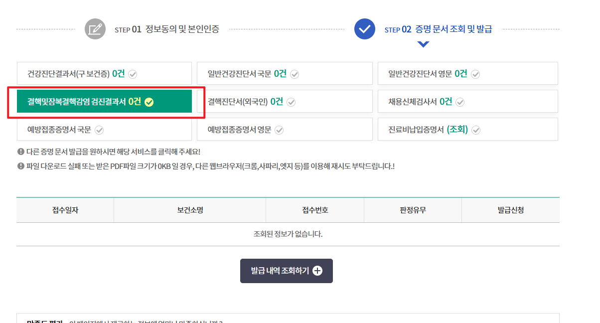 3. 잠복결핵 검사 확인서 인터넷 발급 방법