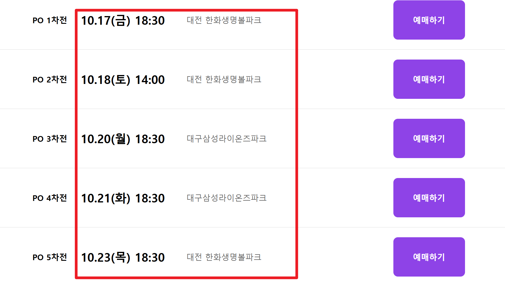 2. 포스트시즌 일정표