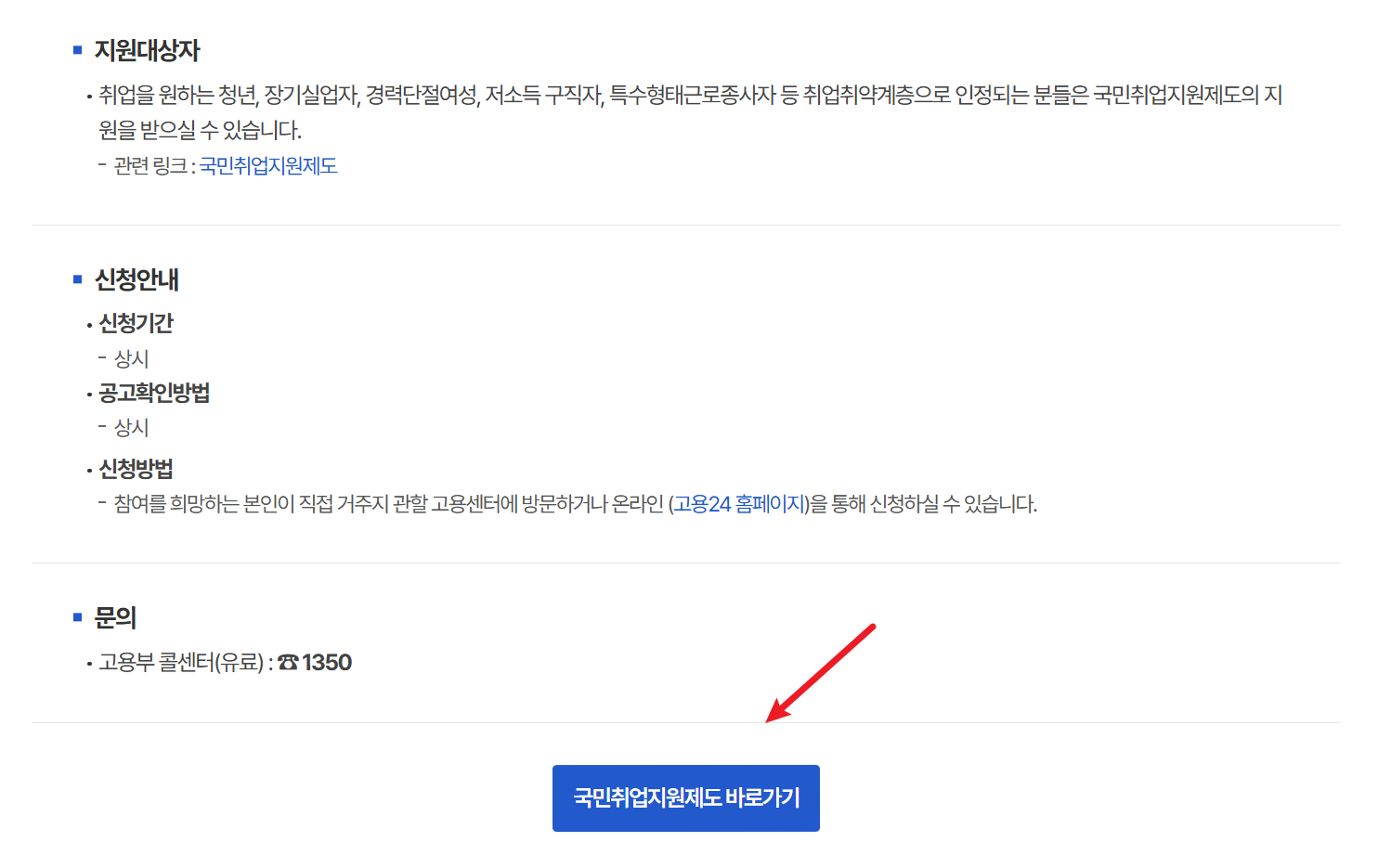 - “국민취업지원제도 신청자격”을 충족하는지 먼저 확인해야 합니다.