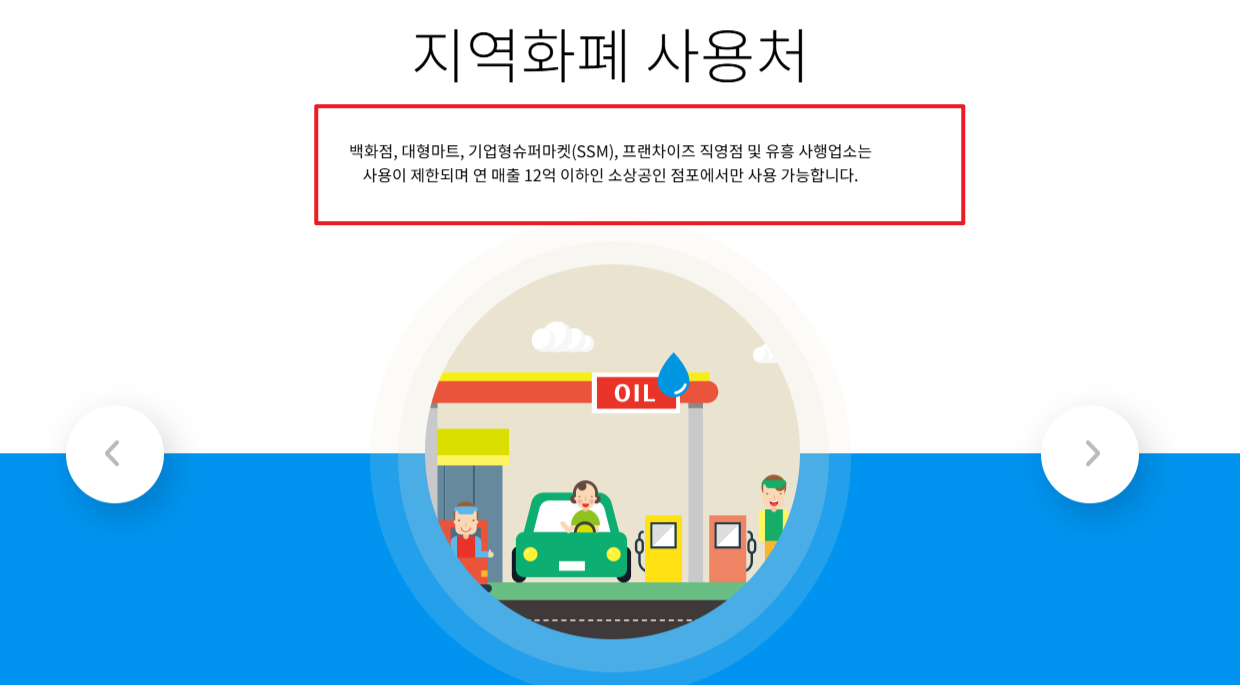 - 주유소와 대형마트는 일부 품목 제외(담배, 상품권 등)